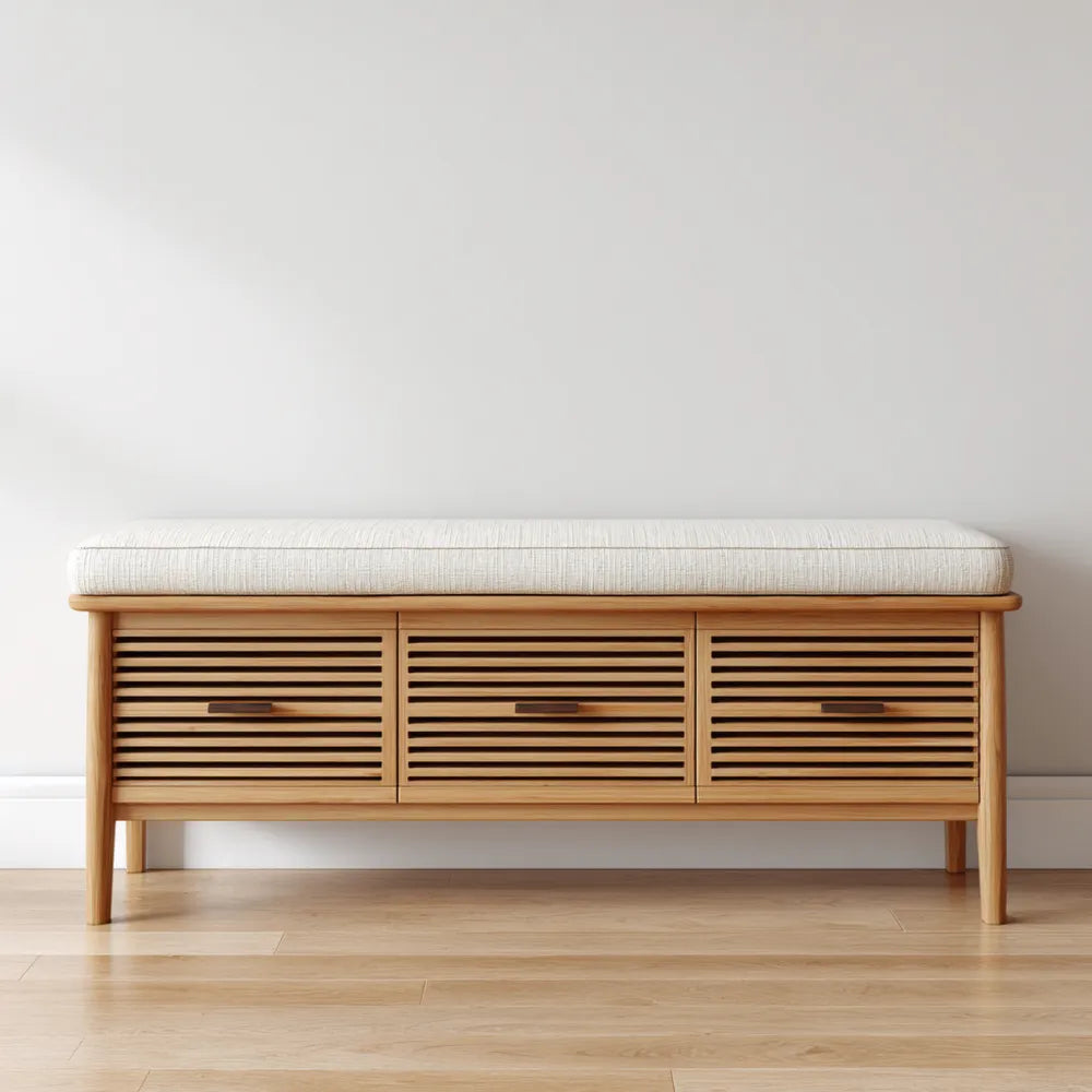 Hall Bench with Drawers Upholstered Cushion 39.37x15.75x17.72 inches - White - Vintage Style